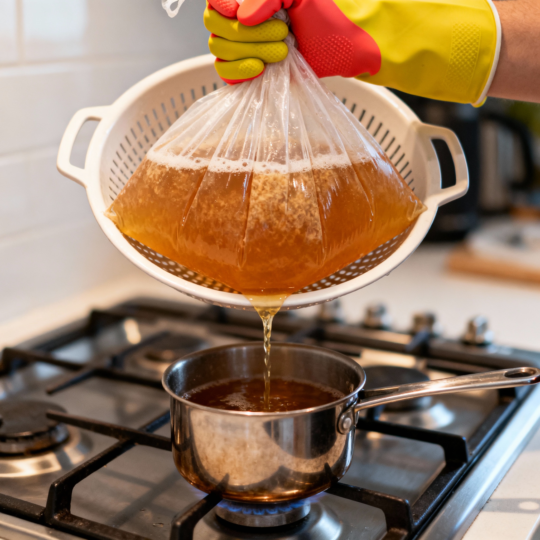 Brew-in-a-bag (BIAB) simplifies the process by combining the mash tun and boil kettle into one vessel. At this scale, you typically work with about 2.5 pounds of grain, which fits comfortably in a large mesh bag.